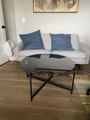 - Perfect addition to any living room; this circular marble top coffee table is designed for use in front of any couch or television