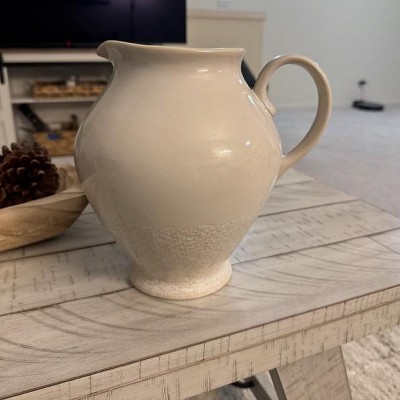 Give a boost of style to your serveware with the Stoneware Beverage Server from Threshold™ designed with Studio McGee. This cream beverage server features a woven-like texture along half of the exterior to add elegance to your tablescape. Great for everyday dining or hosting guests, this stoneware beverage pitcher comes with a spout and a handle for convenient pouring of your favorite hot or cold beverages, and it can be hand washed for easy cleaning.