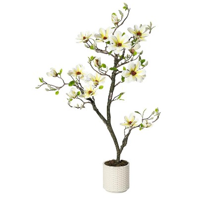 35in Artificial Camellia with Ground Spike-Fake Silk Topiary Trees for Home Decor Garden Patio and Indoor 4 Pack White