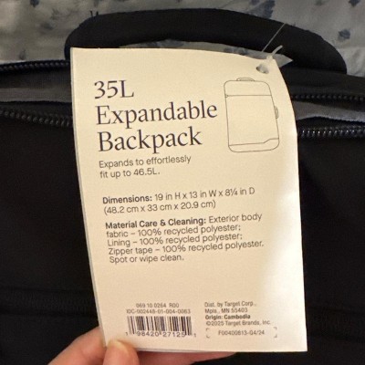 I never leave reviews but I had to leave a warning on this one. I bought this bag for a trip for the extra space (the reviews are correct, the sizing is slightly different from what’s listed in the details - it’s the same dimensions as the non-expandable bag, but this has a water bottle holder and expander — both of which I liked since it was the same price anyway). I loved the bag but the very first time I used it the strap completely snapped as soon as I got to the airport. I didn’t even have the bag that full or heavy. Target was great and issued a refund but I went my whole trip through Europe with a broken backpack after doing a ton of research to get this one. I am hoping I just got a defective bag but if you’re purchasing this to travel, wear it around for a bit before you leave for your trip to make sure the strap holds as mine broke basically immediately. I love Target and am a fan of everything I get there but this was a big disappointment for me so be careful!