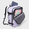 Make all your travels convenient with this 35L Travel Backpack from Open Story™. This softside backpack features a zipper compartment with generous space on one side to pack clothes and more, while the other side is designed with a mesh zip pocket and an organizer zip pocket. Plus, an exterior zip pocket with multiple slip pockets offers you additional storage space. Secured by a full zip-around closure, this backpack is made of a water-resistant fabric for keeping the contents dry, while the adjustable padded shoulder straps make carrying it a breeze. Designed in a solid hue, it features a sleeve at the back for slipping over the telescoping handle of your luggage bag for effortless maneuverability.