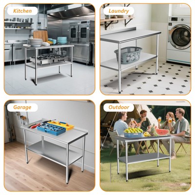 - Enhanced Mobility and Safety: Equipped with high-quality casters, this stainless steel kitchen work table allows for effortless movement. The built-in braking system ensures the table stays securely in place during operation, promoting safety and efficiency in use.