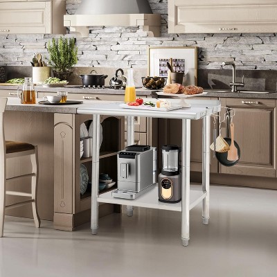 36*24*35in Commercial Kitchen Prep Work Table with Adjustable Under Shelf, Stainless Steel Utility Table for Restaurant Garage Hotel, Rounded Edge