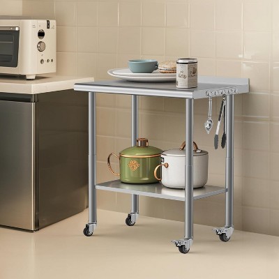 - Enhanced Mobility and Safety: Equipped with high-quality casters, this stainless steel kitchen worktable allows for effortless movement. The built-in braking system ensures the table stays securely in place during operation, promoting safety and efficiency.