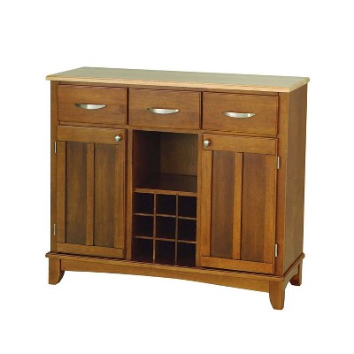Store it all, display it all, and have it all with the Homestyles Buffet of Buffets Server. Whether used in the kitchen, dining room, or anywhere else, it brings organization to your life and style to your home. The variety of storage options including drawers, cabinets and a wine rack gives you the flexibility to figure out what's just right for you. Pack more storage into a smaller footprint with this off-white server that easily coordinates with a variety of environments.