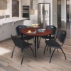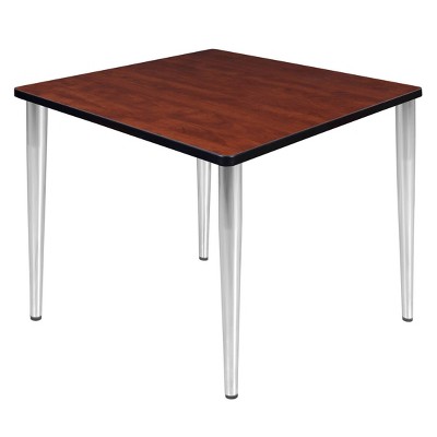 Kahlo tables are a mid-century modern take on the standard post leg table and have an attractive tapered leg. Kahlo post legs come four to a set and assemble in a snap with just a few screws to this 42-inch Round top. The table is constructed of a thermal fused melamine laminate tabletop that is 1-inch thick and finished with a black T-Mold edge band. This Ash gray