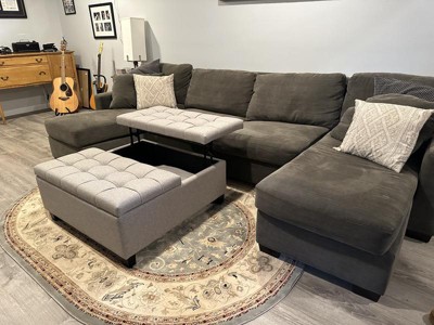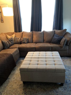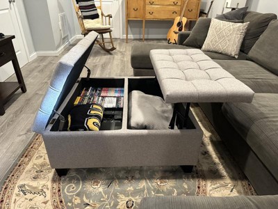 Just received our linen ottoman yesterday! We love it! The storage area is a huge plus for storing blankets. Compliments our dark leather sectional perfectly. Very sturdy and set up was a snap! Is all we had to do was attach the legs. Bonus …it arrived several days ahead of schedule. So pleased with our purchase!