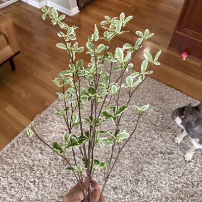 [This review was collected as part of a promotion.] I bought this branch because it looked so pretty online and I was looking for something simple to freshen up my real plant while it is trying to recover. Honestly, I was surprised how real it looks in person, down to the variation in the leaves. It is not overly glossy or fake and the size is nice and adds just enough fullness to my real plant that is coming back to life. For the price, it’s a great value and it was effortless to add it to the pot, and it blends perfectly. I received an incentive to write this review.