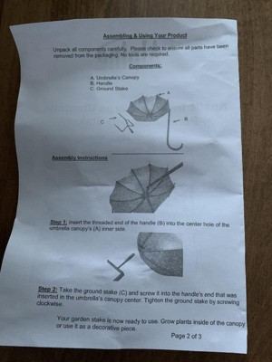 Just placed my garden plant umbrella out and it looks great. It was also easy to assemble..no problems and it was easy to install in the soil.