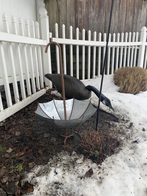 [This review was collected as part of a promotion.] The rustic large umbrella planter garden stake adds an elegant and stylist look to my colorful garden with the birds landing on the handle of it make a perfect picture. The stakes allow you to stationary the planter in the soil. This additional to my garden brighten up my day.