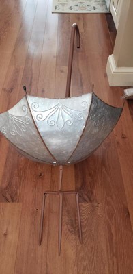 36" Iron Rustic Upside Down Umbrella Outdoor Planter/Garden Stake Silver/Brown - Alpine Corporation