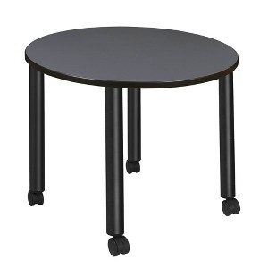 Give everyone more room with Kee tables. Kee Mobile post legs come four to a set and include locking casters, which makes moving the whole table easy. This 30-inch Round table assembles in a snap with just a few screws. The table is constructed of a thermal fused melamine laminate tabletop that is 1-inch thick and finished with a black T-Mold edge band. This Ash gray
