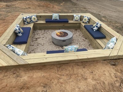 - Includes 13 lbs. of rustic lava rock, and a weather-resistant PVC cover for when the fire pit is not in use