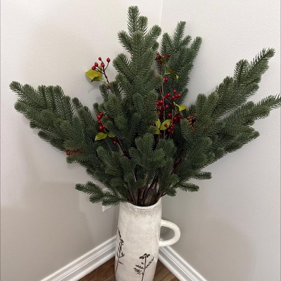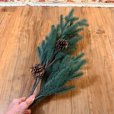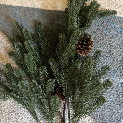 Add a touch of greenery to your indoor space with this Pine and Pinecone Artificial Stem from Hearth & Hand™ with Magnolia. This artificial stem features lush green pine needles on multiple branches with cones for a charming autumnal touch without the need for watering. Style it individually in a slim vase or as part of a larger arrangement for an eye-catching display.