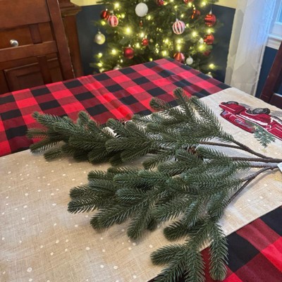 [This review was collected as part of a promotion.] I received this artificial Pine stem and was pleasantly surprised at the quality of the material utilized to create the stem. It doesn’t look artificial, which most do. It actually looks like a real pine stem, which makes me so happy. What a great value for the price . I wanted to order one to see what it actually looked like in person before I ordered more. I’d like to use these as a tablescape at the next holiday dinner!