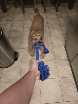 The 36" Rope Dog Toy by Boots & Barkley™ is perfect for strong chewers! It's durable and can withstand intense tug-o-war sessions, making it ideal for active pups. My dog loves it, and it's held up great even after rough play. It is great for both companion or self play and keeps him busy for quite a while. Highly recommend!