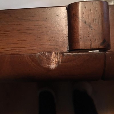 Solid wood, quality table for a very affordable price. Pecan finish so pretty! Also purchased the counter height stools to match. The table comes with a pedestal extension to increase height from normal table height to counter height. Follow directions & you will have no issues with assembly. Tip: before tightening all screws of stools, sit on each one to level. The first table ordered was damaged, dent on the side (see photos). Target sent a replacement in a few days. Return of table, UPS pickup was very easy. Target had best price, than several other popular online furniture sites, for both counter height chairs & table. So pleased with this online purchase.