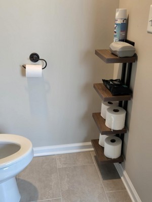 This is a perfect toilet paper holder and the best part i can sweep right under without having to move it. Very easy to put together and attach to the wall.