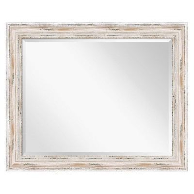 36" x 24" Mother of Pearl Handmade Mosaic Wall Mirror with Blue Corners Cream - Olivia & May: Nautical Style, No Assembly Required
