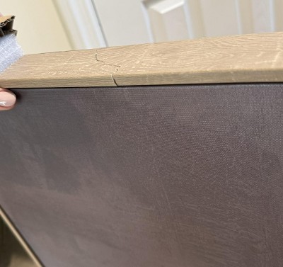 A: The frame is made from polystyrene with a brown wood-finish.