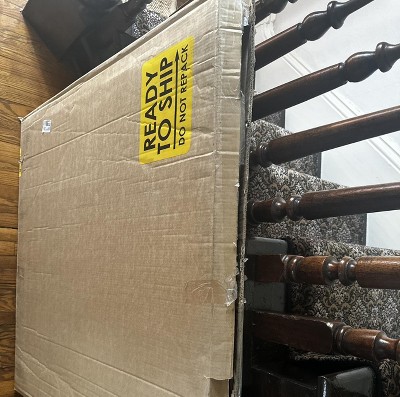 A: It comes with D-rings to hang it, but they are not connected to the picture. They are connected to the cardboard that comes on it to protect the corners.