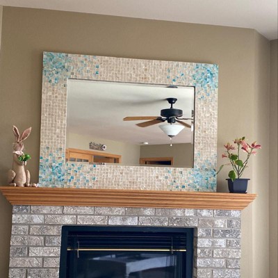 - •A wall mirror accent piece featuring a clear reflective glass mirror panel with mosaic shell inlay on its thick border