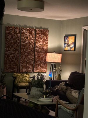 When you walk in my front door, you can see straight in to my sunroom. I thought that hanging 3 panels would make a nice triptych and I was right. It is beautiful. I wish they were packed more securely, as several wood pieces had fallen off in transit. Glued them on, and am very happy.