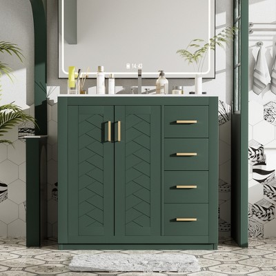 36" Bathroom Single Vanity Sink Combo with Storage, Bathroom Floor Cabinet with Drawers and Doors