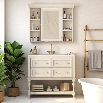 36" Bathroom Vanity with Ceramic Sink and Medicine Cabinet, 4 Drawers, Storage Shelf, Solid Wood Frame,Bathroom Cabinet Set