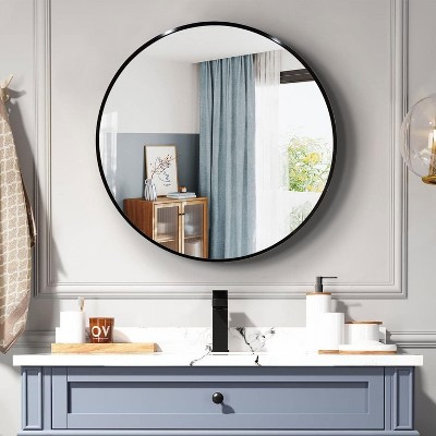 32 Inch Black Metal Framed Round Bathrrom Mirror for Wall.