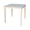 International Concepts Square Solid Wood Counter Height Table with Shaker Legs Unfinished