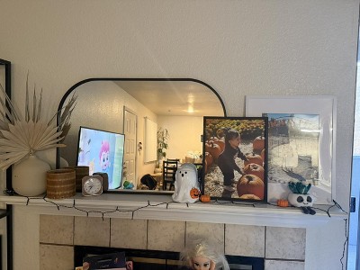 - Rounded-edge wall mirror adds unique shape to your decor