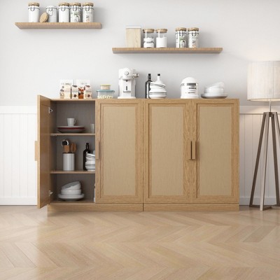 A rustic-chic cabinet featuring breathable rattan doors and wood construction. Perfect for airy storage in sunrooms, patios, or bohemian-style interiors.