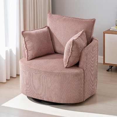 360-Degree Swivel Accent Chair, Modern Reading Chair with Thick Cushion & Chenille Fabric for Living Room & Office,Pink