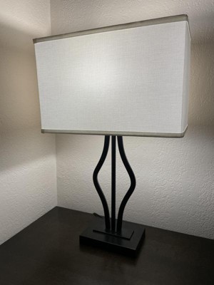 360 Lighting Ally Modern Table Lamps 26 1/2" High Set of 2 Black Metal with USB Charging Port Rectangular Fabric Shade for Bedroom Living Room Desk