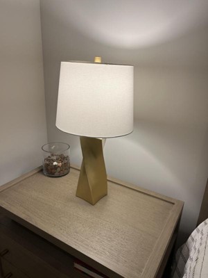 360 Lighting Arabella 25" High Geometric Modern 3-Way Table Lamps Set of 2 Gold Finish Off-White Shade Living Room Bedroom Bedside Nightstand House