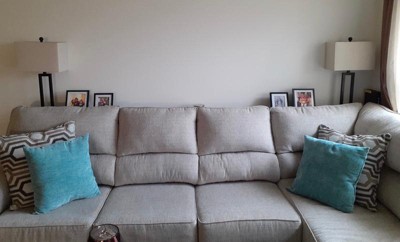Found a picture similar to my entry way in which they were featuring a very expensive lamp that I wanted but couldn't afford. Decided to try and find something similar at Lamps Plus for a much lower price tag. This lamp fit the bill perfectly and hubby and I love it!!