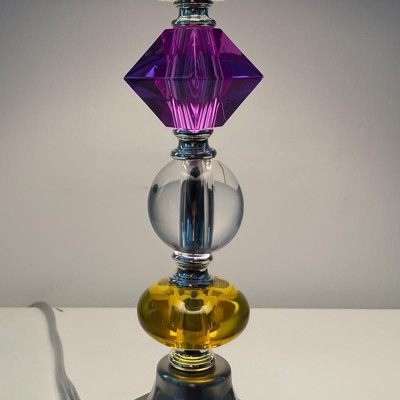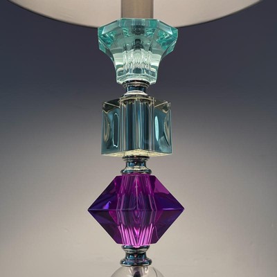 I took a chance and ordered the set, based on the other good reviews. They could not have been more right. These lamps are just beautiful! I was looking for something a bit different, with a colored shade. Love the purple shade and the muted glow it gives off. Love the jeweled base and the colors. Can’t wait to see them after dark. Really pleased with this purchase : )