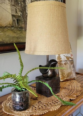 360 Lighting Bird Moderne Rustic Farmhouse Accent Table Lamp 15 1/2" High Sculptural Crackle Bronze Brown Natural Burlap Drum Shade Bedroom Nightstand