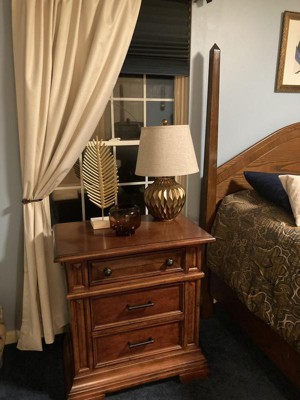 I bought this lamp and another style with a similar color but more slender. I was not crazy about the color of this base and it looks cheaply made. The shade was nice just didn't like the base. I returned it and kept the other one as it looked nicer on my small end table. Guess you get what you pay for.