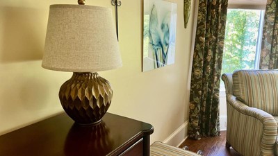 Beautiful for bedroom, love the color of the shade and antique bronze color