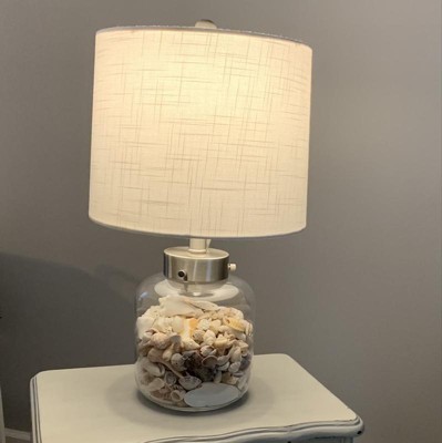 360 Lighting Canister Coastal Accent Table Lamp 20 1/2" High Clear Glass Fillable Sea Shells Off White Linen Drum Shade for Bedroom Living Room Kids