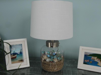 Looked all over for a lamp that spoke to us and found this - filled it with sea glass that we collected and it looks very pretty and unique. Works well and has a nice linen white shade. Happy with our purchase.