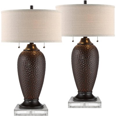 360 Lighting Chalane Rustic Table Lamp 31 1/4" Tall Antique Bronze Hammered Gourd Natural Linen Cylinder Shade for Bedroom Living Room Bedside Office