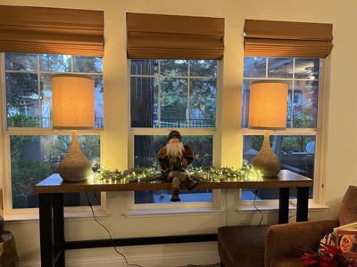 We are so happy with this lamp! It came rather quickly and in perfect shape. We thought it might be a bit more bronze in color, but looks great beside our cream colored chair!