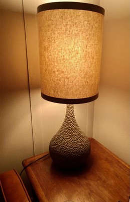 Love the retro vibe of these lamps! The texture and color is perfect with our RH bedroom set, the addition of cool dimmer switches makes them beyond functional for us!