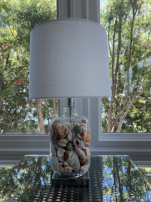 360 Lighting Coastal Accent Table Lamp 21.75" High Clear Glass Fillable Sea Shells White Drum Shade for Living Room Family Bedroom Bedside
