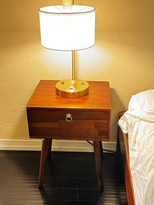 Lamp looks like it cost more than it did. I have it on my nightstand and it is sturdy and very convenient for charging my phone and keeping it close by. Very happy!