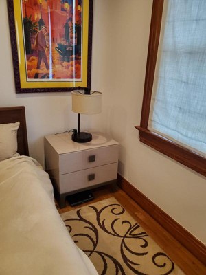 I bought this for my guest bedroom and I really like it. The color is nice, it’s feels and looks expensive, and the power outlets on top is really convenient.