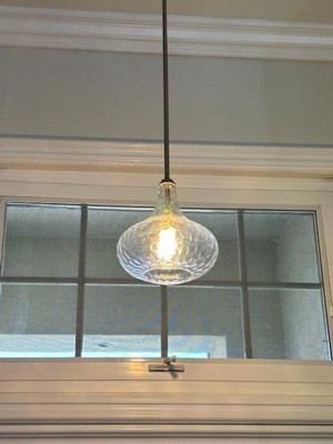 We love this pendant light! I didn't realize how beautiful it would be in our space until we installed it and turned it on. It casts the most amazing light streaks on the ceiling and walls. We're installing the same fixture in brushed nickel in our laundry room and can't wait to see the results! My husband and I are so happy we chose this.